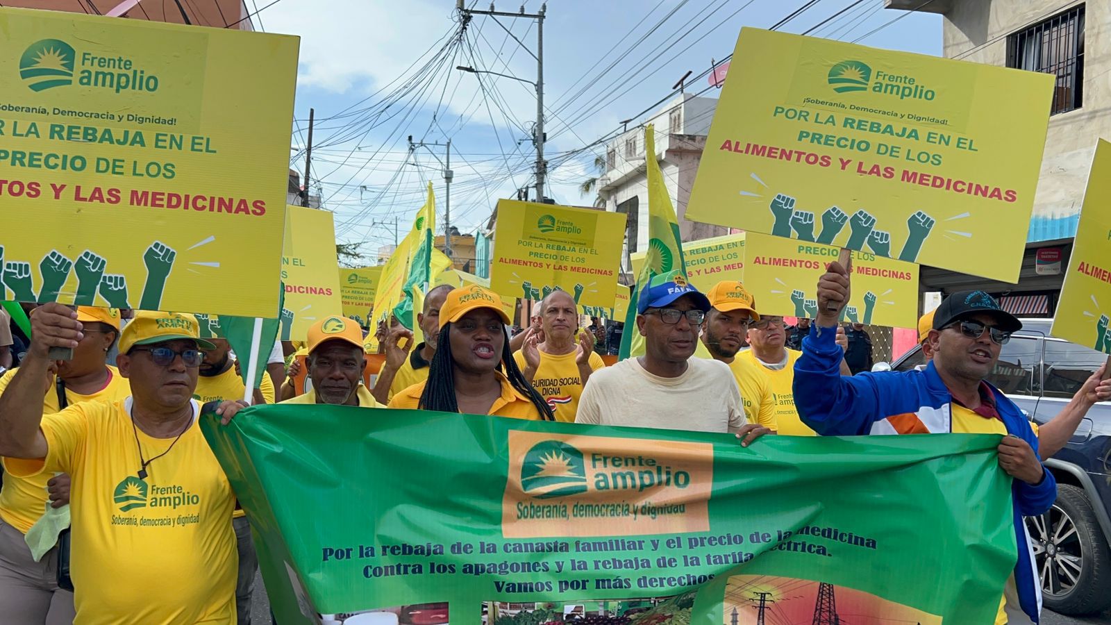 Ámbito RD- El Partido Frente Amplio realizó su cuarta caminata protesta en el municipio Santo Domingo Este, contra el alto costo de la canasta básica familiar y exigiendo la rebaja de los alimentos y la medicina.