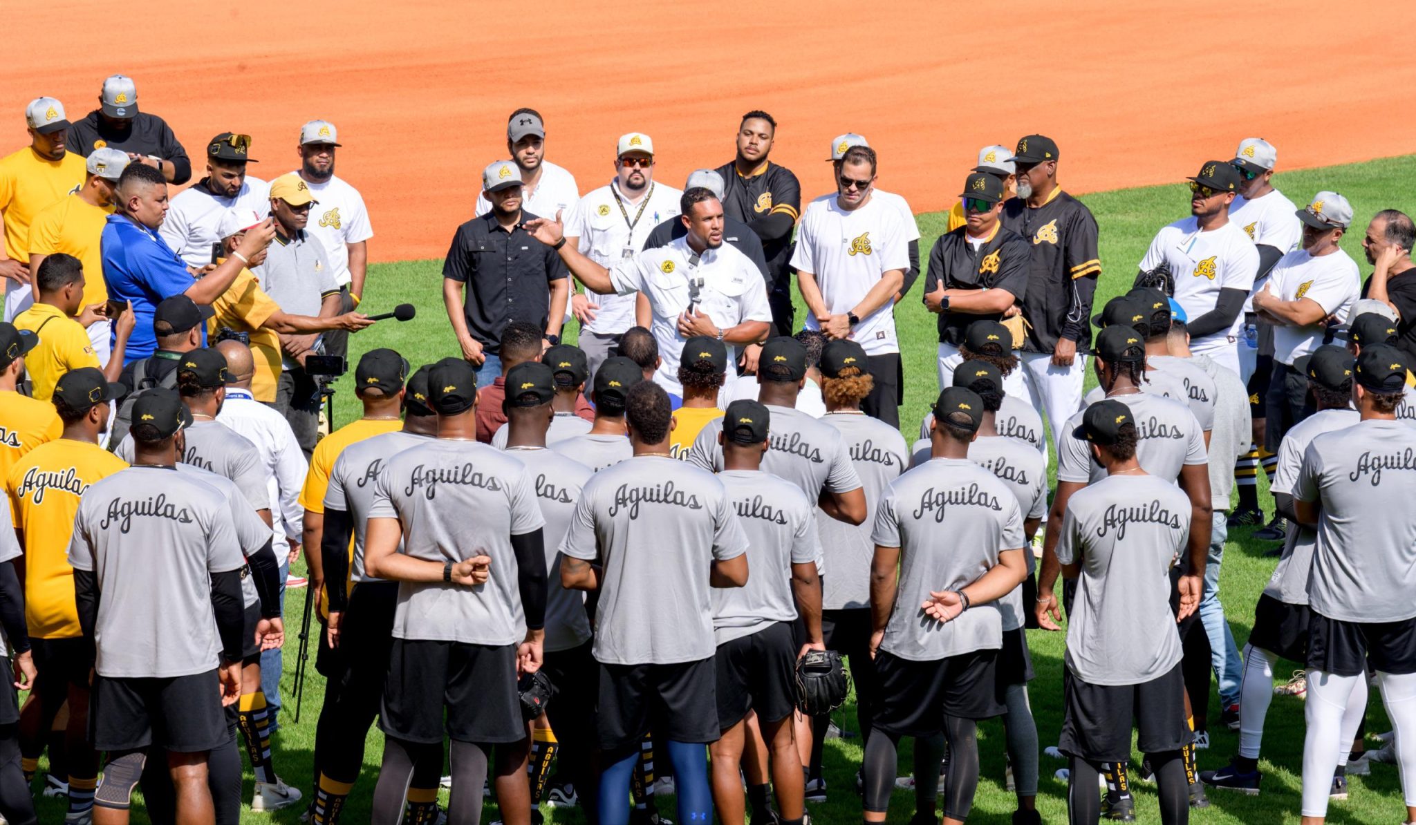 Tras dar la bienvenida, Guzmán exhortó a los jugadores a dar lo mejor de cada uno, fijando como objetivo la conquista del campeonato para las Águilas Cibaeñas. Recordó que el éxito solo se alcanza con trabajo fuerte y constante, y les dio libertad para aportar desde cualquier rol: ya sea con un consejo, una sugerencia o cualquier otro aporte.