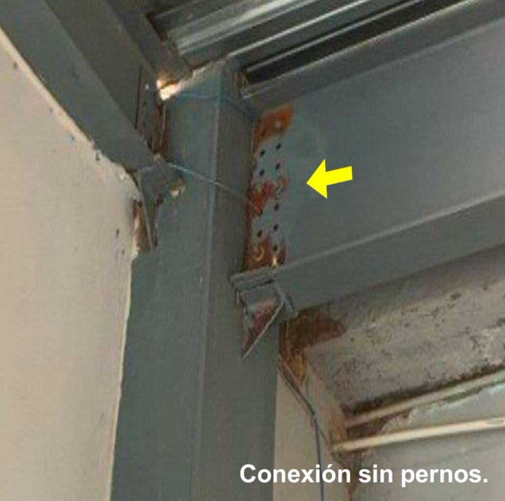 De igual manera, se detectaron deficiencias en las líneas de transferencia de cargas, uniones mal construidas, sin soldadura, perno sin torque adecuados, y secciones no compactas ni precalificadas bajo normas internacionales.