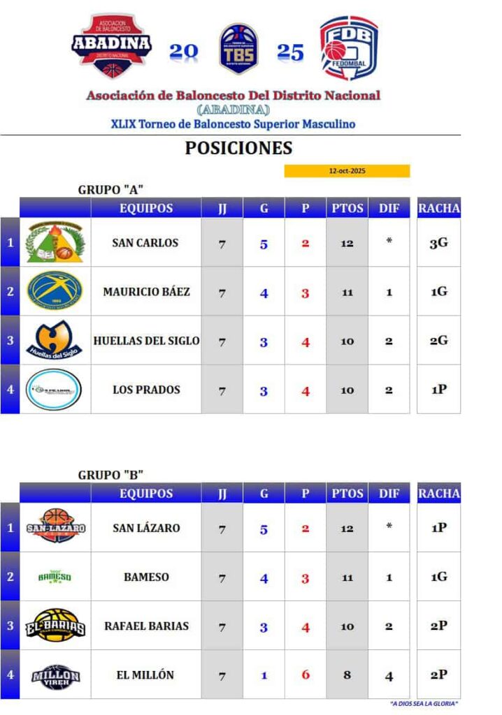 - San Carlos domina este grupo A con 5-2 y en segundo está el Mauricio Báez que tiene 4-3.
