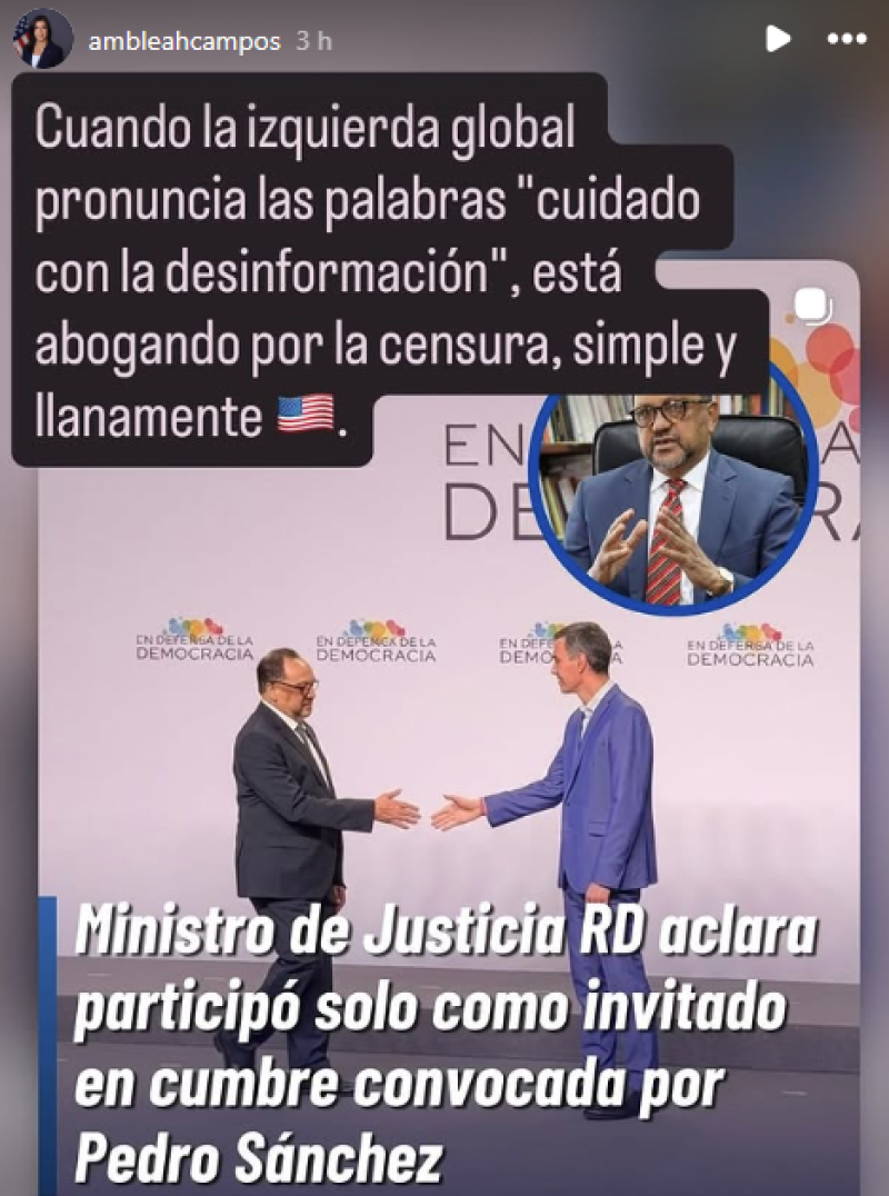 Las publicaciones surgieron luego de la participación del ministro de Justicia, Antoliano Peralta, en la IV Cumbre en Defensa de la Democracia, celebrada en Barcelona y convocada por el presidente del Gobierno español, Pedro Sánchez.