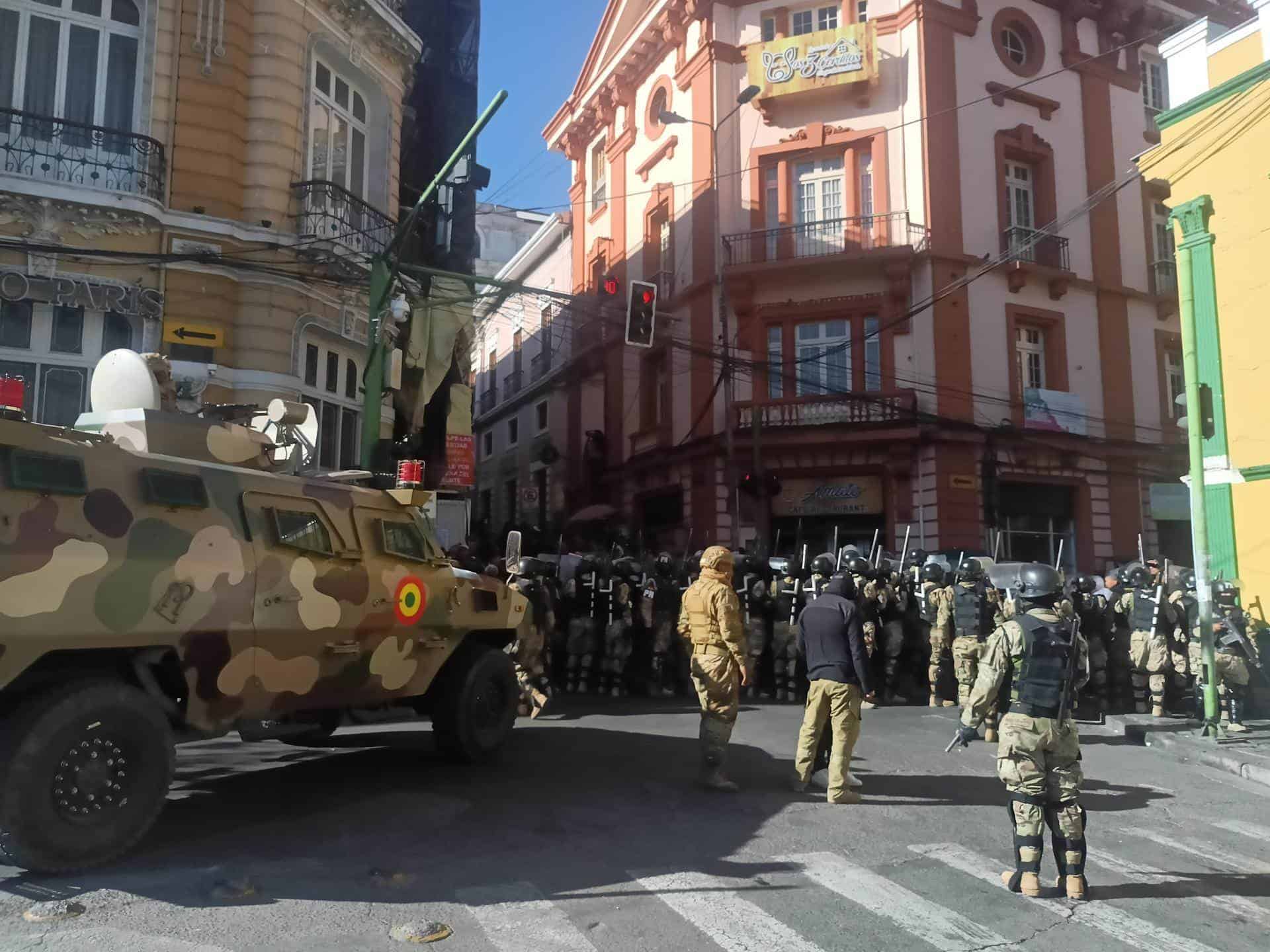 Ámbito RD- Varios tanques y militares fuertemente armados han tomado la plaza frente a la sede del Ejecutivo de Bolivia, después de que el comandante general del Ejército del país, Juan José Zúñiga, amenazase con tomar el edificio mientras se desplazaba seguido de más vehículos de manera «irregular» hacia la sede del Gobierno en La Paz.