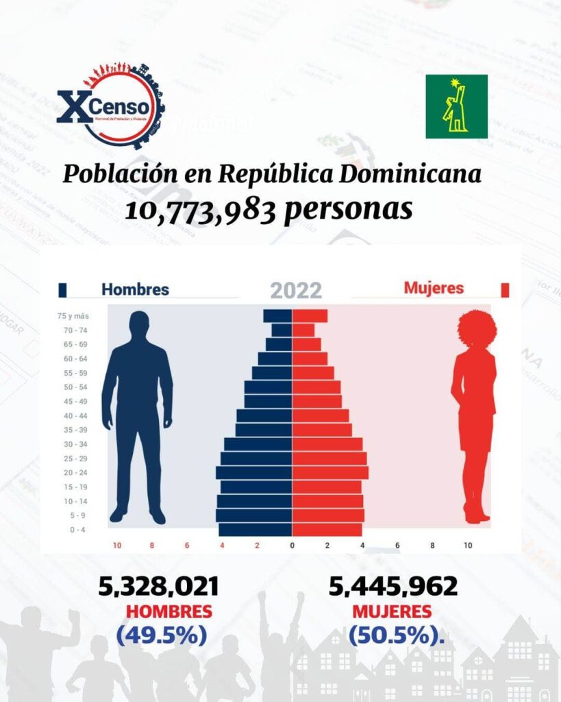 Ámbito RD- La Oficina Nacional de Estadísticas (ONE) reveló hoy que el informe básico del Décimo Censo, Población y Viviendas arrojó que República Dominicana está habitada por 10 millones 773 mil 983 personas.