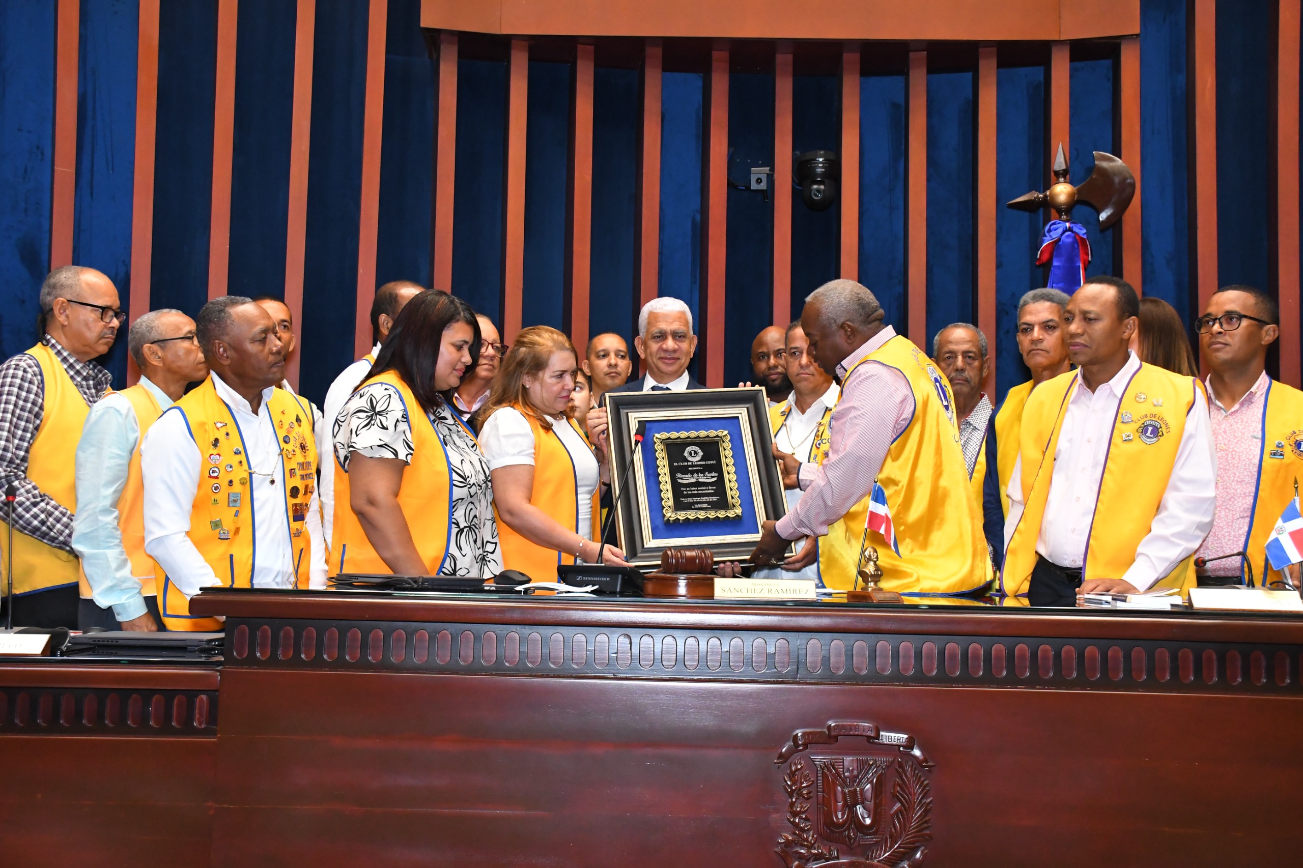 Ámbito RD- El presidente del Senado, Ricardo de los Santos, fue sorprendido por integrantes del Club de Leones de Cotuí, con una placa de reconocimiento por sus grandes aportes y la labor social que ha realizado en la provincia Sánchez Ramírez.