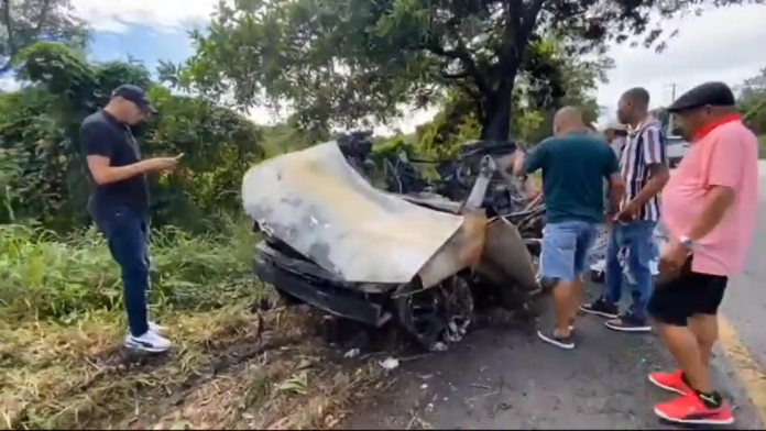 Ámbito RD- Tres hombres y una mujer perdieron la vida la noche de ayer domingo luego de que el vehículo en el que se trasladaban se incendiara, tras impactar con un árbol, en un hecho registrado a la altura del km. 56 de la autopista Duarte a su paso por Villa Altagracia.